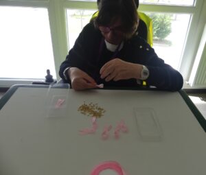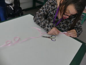 Durant plusieurs séances de l’atelier loisirs créatifs, ils ont confectionné avec soin de nombreux rubans roses, symboles de la lutte contre le cancer du sein. Ces rubans ont ensuite été distribués à l’ensemble des résidents et des salariés, afin que chacun puisse afficher son soutien à cette cause importante.